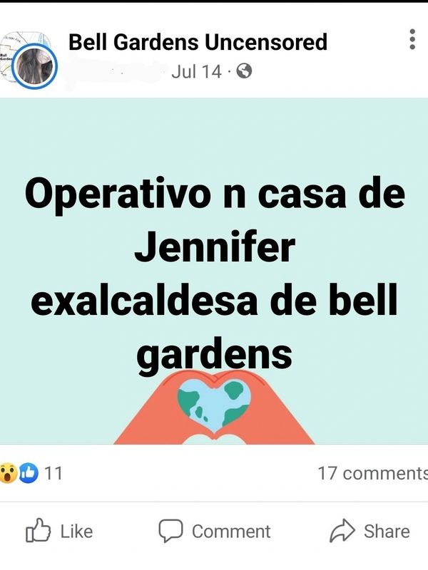 Mensaje publicado por una vecina de Jennifer en la pagina de Facebook Bell Gardens Uncensored el 14 de julio de 2022