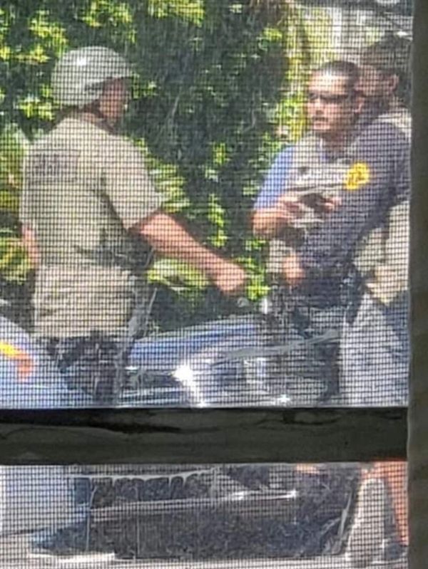 Agentes federales afuera de la casa de Jennifer Rodríguez el 14 de julio de 2022
