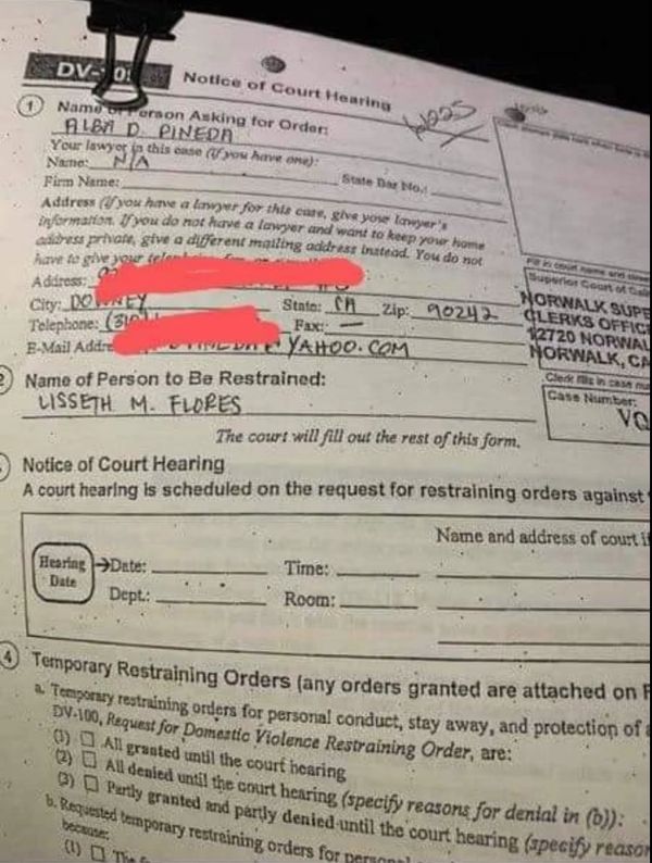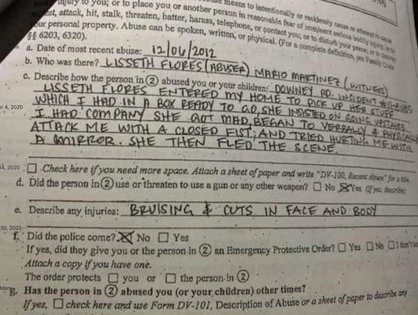 Restraining order filed against Lisseth by her ex-girlfriend for domestic violence.